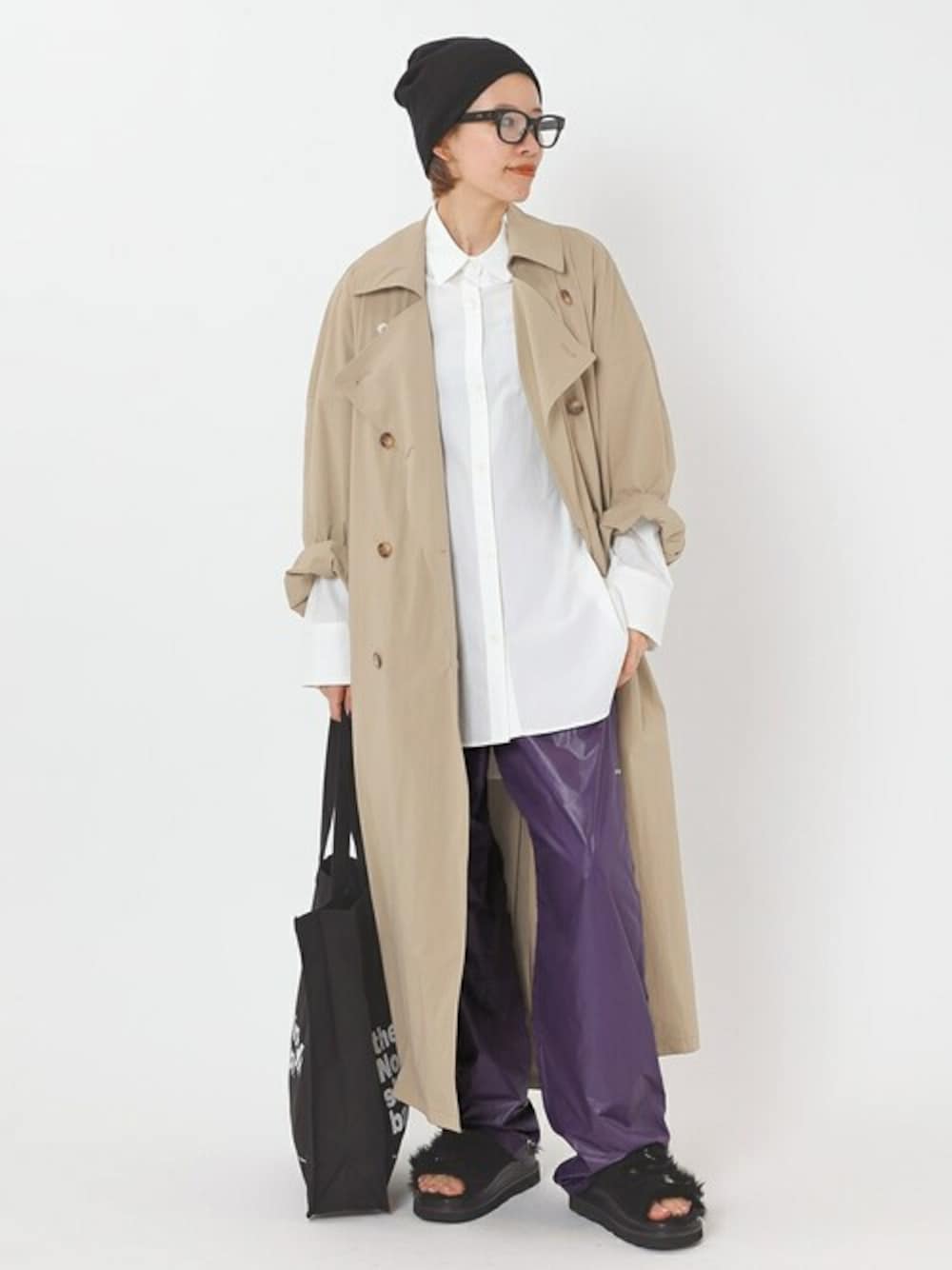 STAFF.M(AP STUDIO 新宿店)のスラックス「【PLAYBACK/プレイバッグ】ウィンドブレーカーパンツ」を使ったコーディネート