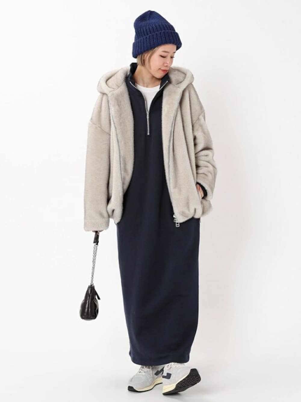 STAFF.M(AP STUDIO 新宿店)のワンピース「ハーフジップスウェットドレス」を使ったコーディネート