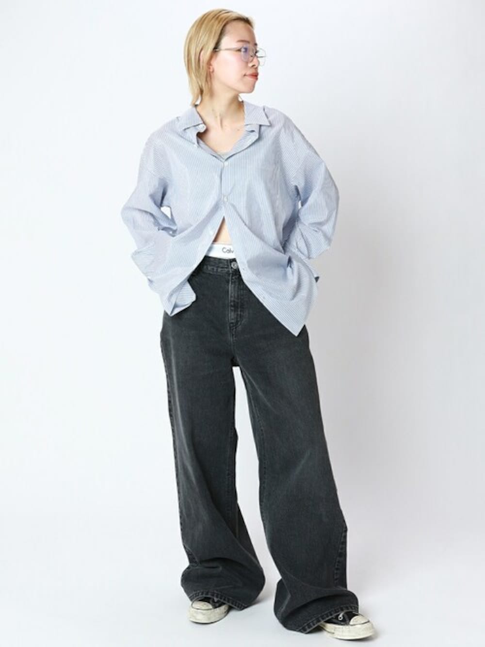 STAFF.M(AP STUDIO 新宿店)のシャツ/ブラウス「コットンシルクストライプシャツ」を使ったコーディネート