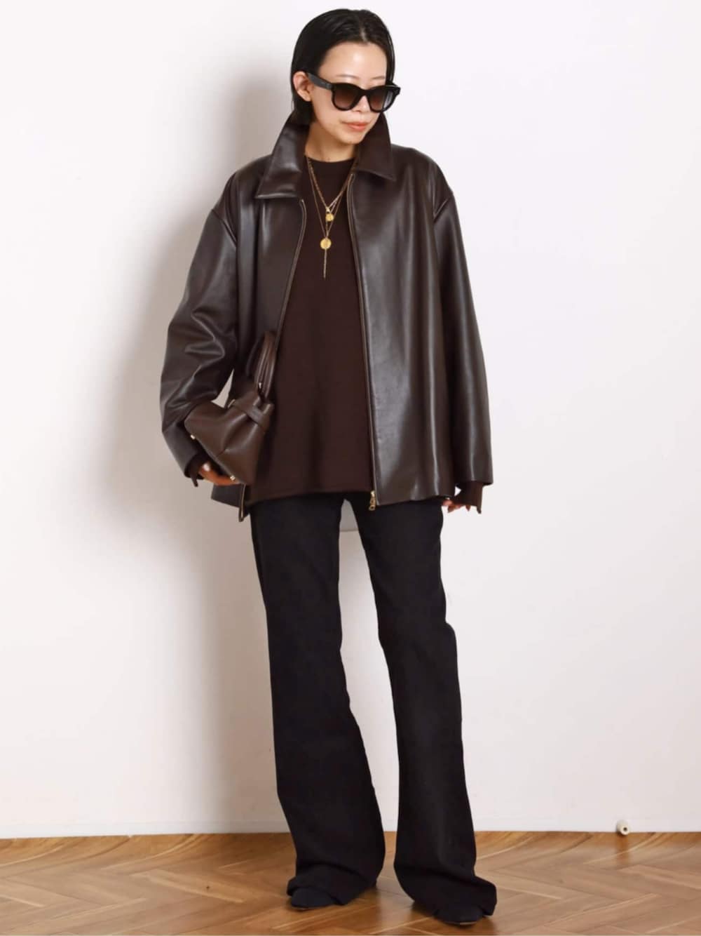 上質なラムレザーをふんだんに使用した、ミニマルに羽織れるレザージャケット。 上品な深いブラウンカラーがモダンスタイルの格を上げてくれます。 ヒールブーツ等の女性らしいアイテムとも相性抜群です。