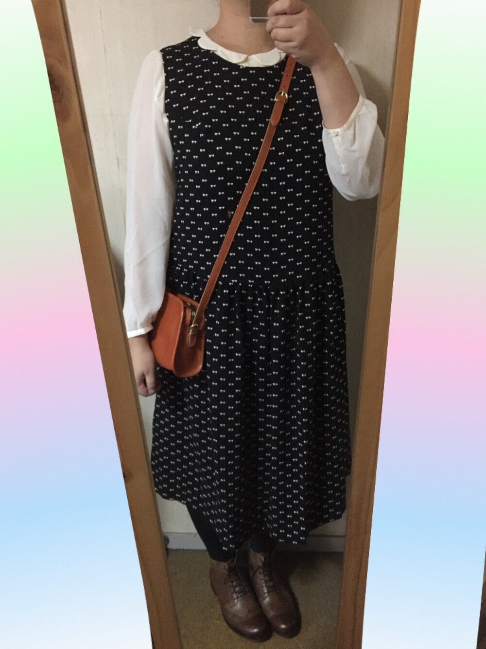 小さなリボン模様のジャンスカです。可愛すぎて、なかなか着こなせないままです(*_*)