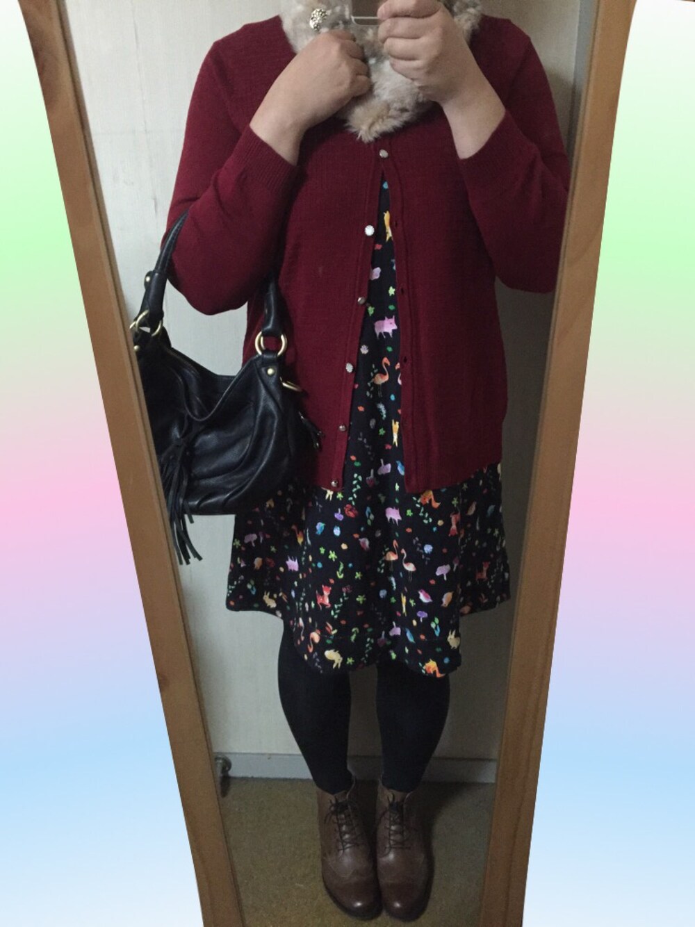 私には着丈が短すぎて、着るたびに悩んでしまうワンピースです。 下にペチをはけばいいんですが、そうするとラブリー過ぎて、ちょっと抵抗があるんです。