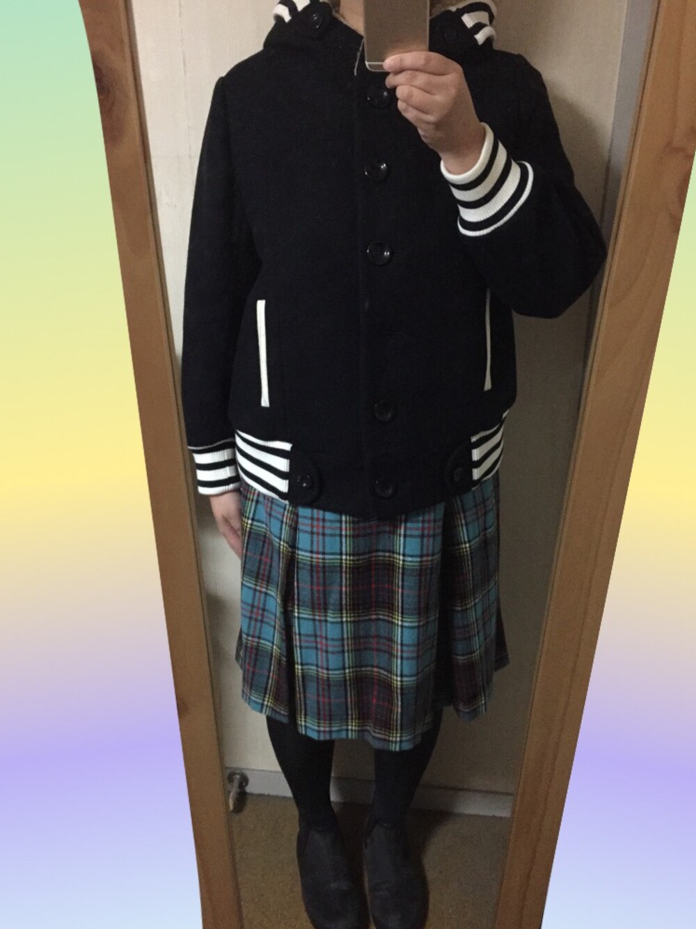 ネットショップのプレセールで買った、フランシュリッペの“放課後ブルゾン”です。 今まで全くノーチェックで、他のコートを買うつもりでしたが、何故か急にこのブルゾンが気になり…。 デザインが若すぎるかな〜と思いましたが、ボトムで結構雰囲気が変わるかな?と思います。 今日は、開き直って(?)チェックのスカートと合わせてみました。 靴はサイドゴアのスニーカーです😃