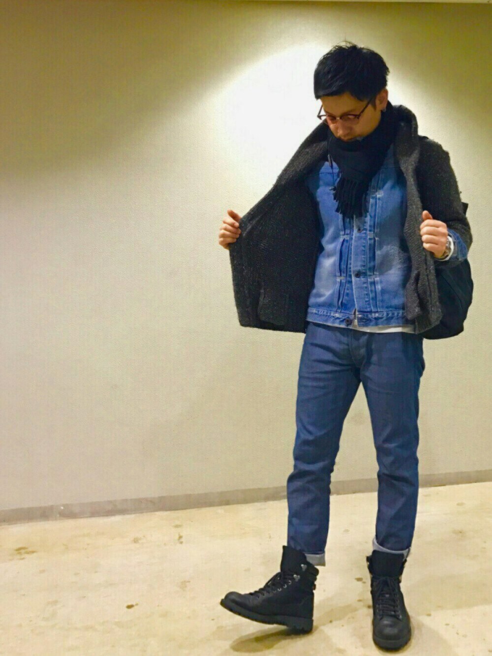 m i c h u 🍖のデニムジャケット「KURO / クロ CROW HERITAGE WASH03」を使ったコーディネート