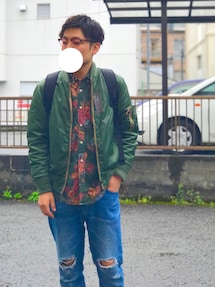 m i c h u 🍖のデニムジャケット「デニム トラッカー ジャケット」を使ったコーディネート