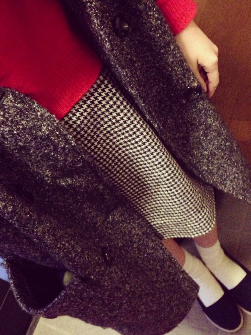 冬コーデ コート、ニット ciaopanic スカート jeanasis 靴下 靴下屋 くつ ?