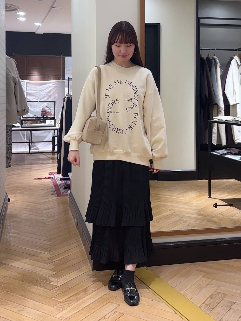 💛各アイテムのおすすめポイント💛  ̄ ̄ ̄ ̄ ̄ ̄ ̄ ̄ ̄ ̄ ̄ ̄ ̄ ̄ ̄ ̄ ̄ ご覧いただきありがとうございます! ˖ ࣪⊹ 自己紹介 ˖ ࣪⊹ 身長 : 162cm トップス : FREEサイズ スカート : FREEサイズ 靴 : 38(24.5cm) 【トップス】 ゆるっとシルエットですが、ダボっと見えせず着ていただけます✨ 【スカート】 シルエットが思ったより広がらず細いプリーツデザインなので普段使いにもぴったりです🤍✨ ウエスト部分はゴム仕様になっているので、楽ちんに履いていただけます◎!!