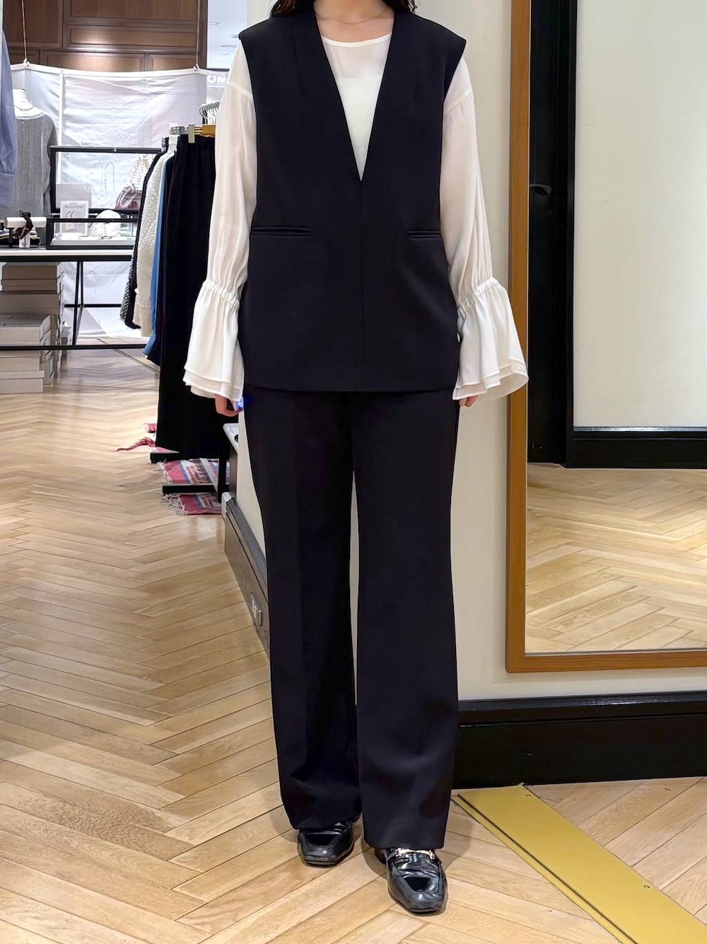 💛各アイテムのおすすめポイント💛  ̄ ̄ ̄ ̄ ̄ ̄ ̄ ̄ ̄ ̄ ̄ ̄ ̄ ̄ ̄ ̄ ̄ ご覧いただきありがとうございます! ˖ ࣪⊹ 自己紹介 ˖ ࣪⊹ 身長 : 162cm トップス : FREEサイズ セットアップ : Lサイズ 靴 : 38(24.5cm) 【トップス】 襟が取り外しできるブラウスで前後2wayで着ていただけます🤍 写真ではボタンを後ろで、襟無しで着ています! 【セットアップ】 同素材でベストとパンツご用意しているので1着持ってて間違いないです✨ ベストパンツ別々にも使っていただけてベストはインナー次第で雰囲気変えて着ていただけるので沢山着回しもできます🤍 パンツは形がとても綺麗なので履くだけで綺麗見えしてくれます!