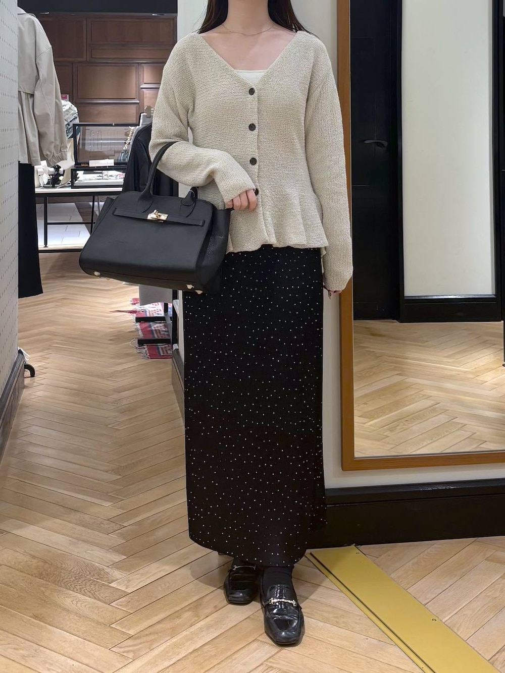 💛各アイテムのおすすめポイント💛  ̄ ̄ ̄ ̄ ̄ ̄ ̄ ̄ ̄ ̄ ̄ ̄ ̄ ̄ ̄ ̄ ̄ ご覧いただきありがとうございます! ˖ ࣪⊹ 自己紹介 ˖ ࣪⊹ 身長 : 162cm トップス : FREEサイズ スカート : FREEサイズ 靴 : 38(24.5cm) 【トップス】 お店でも大人気のペプラムカーディガン✨ 形が可愛らしいので1枚で着映えします!!生地感が伸縮性あるので中にインナーも重ね着でき、暖かく着ていただけます💛 【スカート】 ウエストがゴムでできていて、伸縮性も抜群なアイテムなので自転車乗る方も履いていただけます!! 細かいプリーツが入っているので下着のラインも気にならず履いていただけます!✨ 手洗いでのお手入れ可能です!!🫧