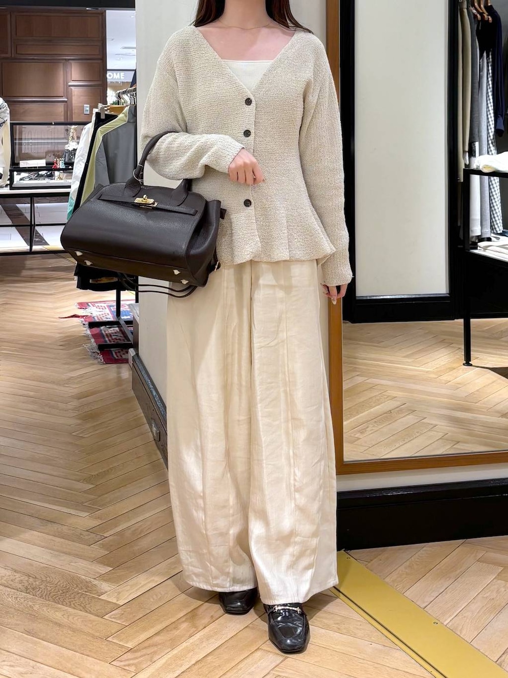 💛各アイテムのおすすめポイント💛  ̄ ̄ ̄ ̄ ̄ ̄ ̄ ̄ ̄ ̄ ̄ ̄ ̄ ̄ ̄ ̄ ̄ ご覧いただきありがとうございます! ˖ ࣪⊹ 自己紹介 ˖ ࣪⊹ 身長 : 162cm トップス : FREEサイズ パンツ : FREEサイズ 靴 : 38(24.5cm) 【トップス】 お店でも大人気のペプラムカーディガン✨ 形が可愛らしいので1枚で着映えします!!生地感が伸縮性あるので中にインナーも重ね着でき、暖かく着ていただけます💛 【パンツ】 ゆるっとシルエットでシルエット気にせず着れました💛 ウエスト部分はゴム仕様になっているので、楽ちんに履いていただけます◎!!