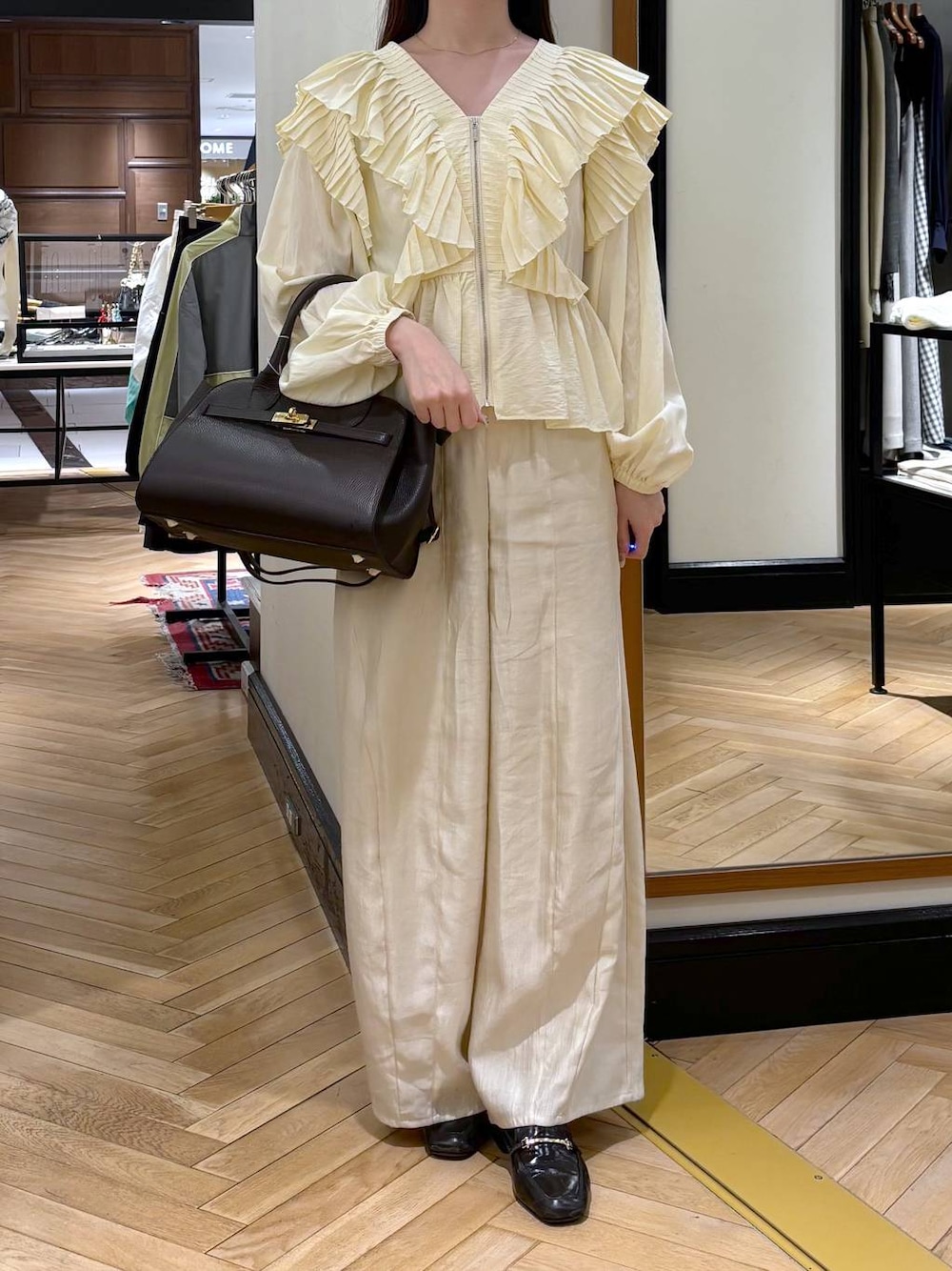 💛各アイテムのおすすめポイント💛  ̄ ̄ ̄ ̄ ̄ ̄ ̄ ̄ ̄ ̄ ̄ ̄ ̄ ̄ ̄ ̄ ̄ ご覧いただきありがとうございます! ˖ ࣪⊹ 自己紹介 ˖ ࣪⊹ 身長 : 162cm アウター : FREEサイズ パンツ : FREEサイズ 靴 : 38(24.5cm) 【アウター】 デザインが可愛らしい形なので1枚でおしゃれ見えします⭐️生地感も柔らかいのでフリルですが広がらず着れました!! 【パンツ】 ゆるっとシルエットでシルエット気にせず着れました💛 ウエスト部分はゴム仕様になっているので、楽ちんに履いていただけます◎!!