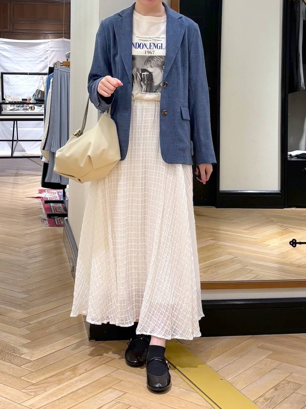 💛各アイテムのおすすめポイント💛  ̄ ̄ ̄ ̄ ̄ ̄ ̄ ̄ ̄ ̄ ̄ ̄ ̄ ̄ ̄ ̄ ̄ ご覧いただきありがとうございます! ˖ ࣪⊹ 自己紹介 ˖ ࣪⊹ 身長 : 162cm ジャケット : Mサイズ Tシャツ : FREEサイズ スカート : Mサイズ 靴 : 38(24.5cm) 【ジャケット】 サイズ展開2サイズご用意しているのでお好きなサイズ感選んでいただけます!🌟 色も3色どれもオシャレ見えする色で、落ち着いたカラーなのでいろんな場面で使っていただけそうです💛 【Tシャツ】 ゆるっとシルエットで身幅も着丈もあるので楽ちんに着ていただけます!!素材も柔らかく肌触りも◎です💛 【パンツ】 なんと言ってもシルエットがきれいでウエストもゴムで楽ちん+腰回りも下っ腹もすっきり気にせず着ていただけます!! カラー展開も豊富なのでお好きなカラー選んでいただけます✨
