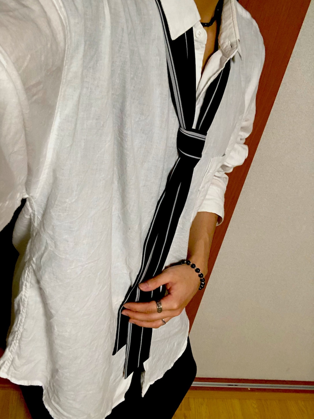 白シャツにネクタイだと、高校生に戻ったような感じがして少し新鮮な気持ちが味わえます✌️ 指輪やネックレスなど小物をつけることによりオシャレさが出せます! 見てくださる方や、いいねしてくださる方ほんとにありがとうございます…! 良かったら、フォローの方もお願いします!