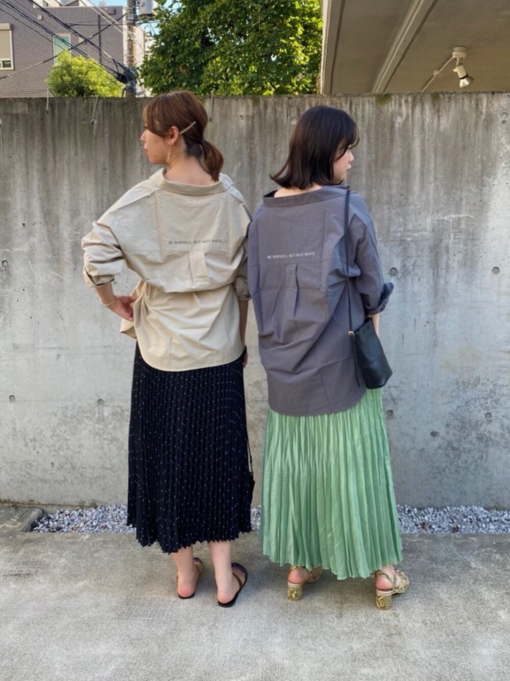 先輩とお揃いコーデ👯‍♀️ 秋物シャツの絶妙な色がツボです💜 こなれ感も簡単に出せるのでこのシャツ使えます🤔✨ Instagram▶︎▷      aqualeaf8 / nne8