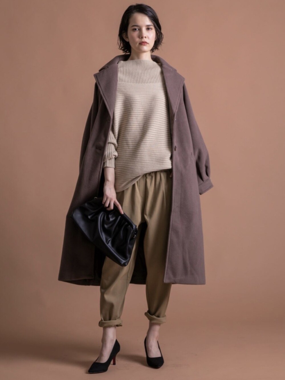 トレンドに関係なく長く愛用できる、ブラウンのチェスターコート。 冬の通勤ファッションからオフコーデまで、幅広いシーンで使える万能アウターです。 ベージュカラーのテーパードパンツと合わせたグラデーションコーデで、洗練された冬スタイルを叶えています。 パンツの裾は少しロールアップして足首を見せることでこなれた雰囲気に♡ パンプスとバッグを黒で揃えればキリッと引き締まった大人っぽいコーデが叶います。