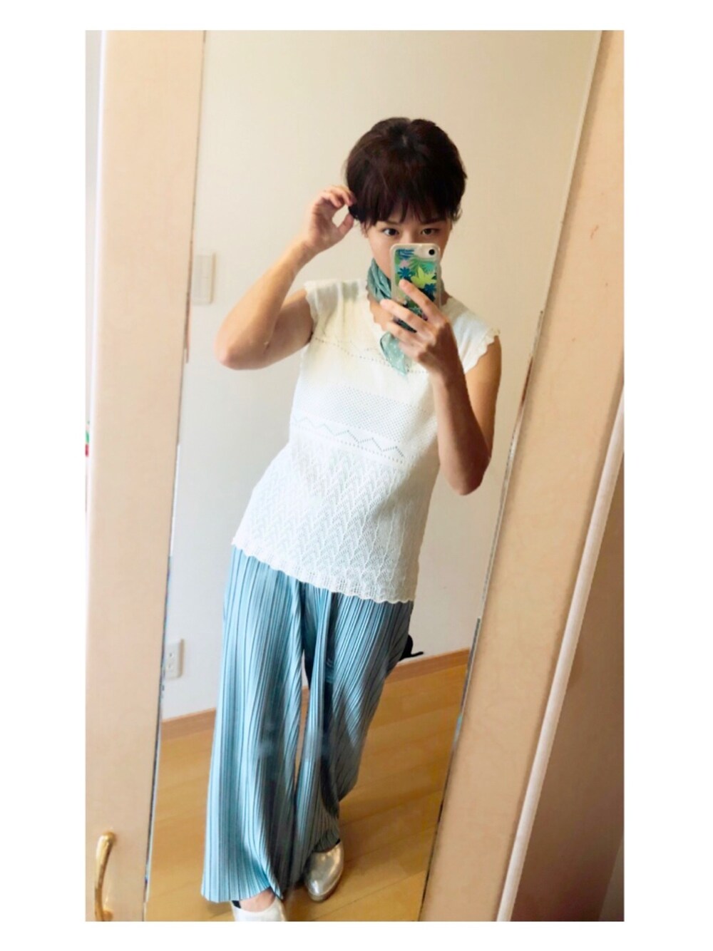 久々にお店でじっくり選んでお買い物できました^ ^ プリーツワイドパンツほんと履き心地良い^ ^ 夏らしいカラーで涼しげに^ ^