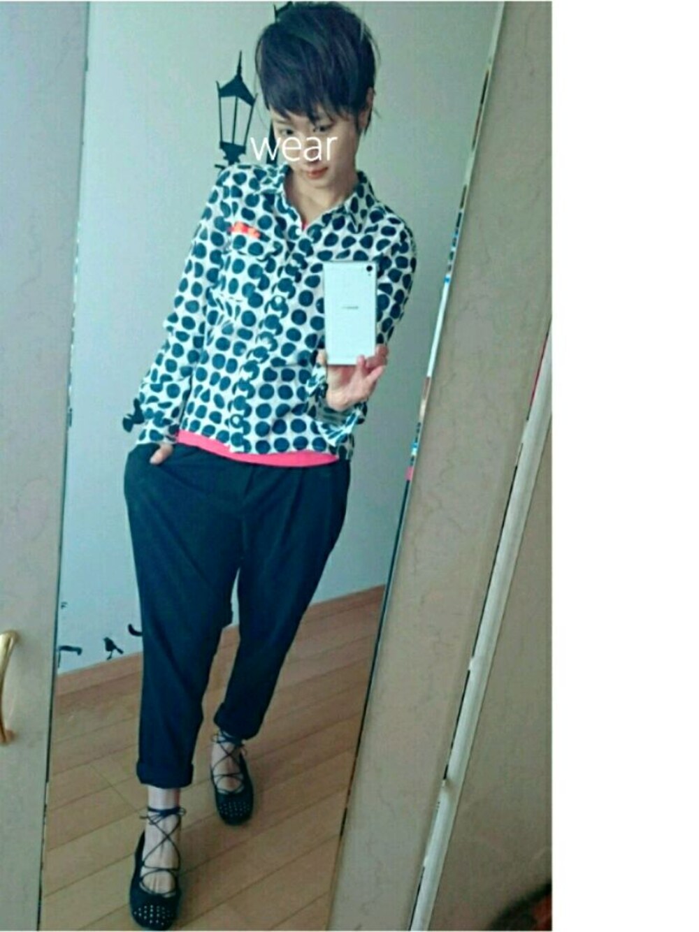 お気に入りのリボンドットシャツ×オレンジのインナー×黒パンツ×レースアップシューズ ヘアスタイルはタイトめにして、自分なりの甘辛コーデにしました。 実はレースアップシューズならぬ、レースアップソックス(^w^) レースアップシューズが欲しかったけど、試しにソックスから取り入れてみました(トレンド好きだけど取り入れるのは慎重派なんです)笑 色んなパンプスに合わせれるし、楽チン♪ よくみたら、靴下ってわかるけどね(^_^;)