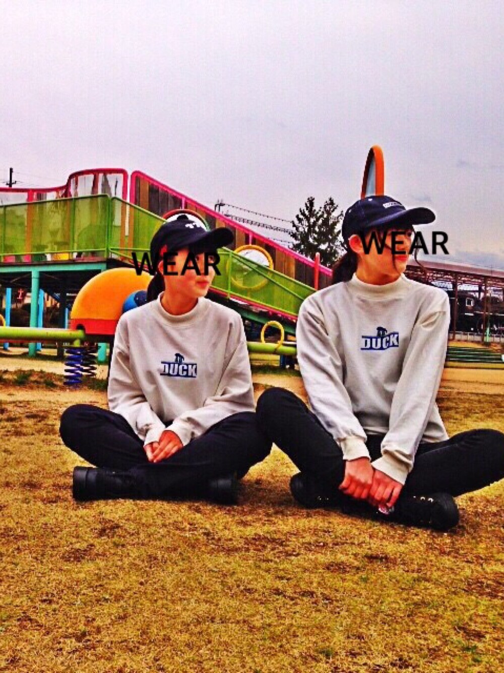 双子コーデで公園🐼🎈 チョーカーちぎれて とりました。✋ 寒いからデニム上に羽織ってます