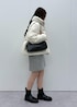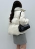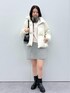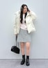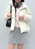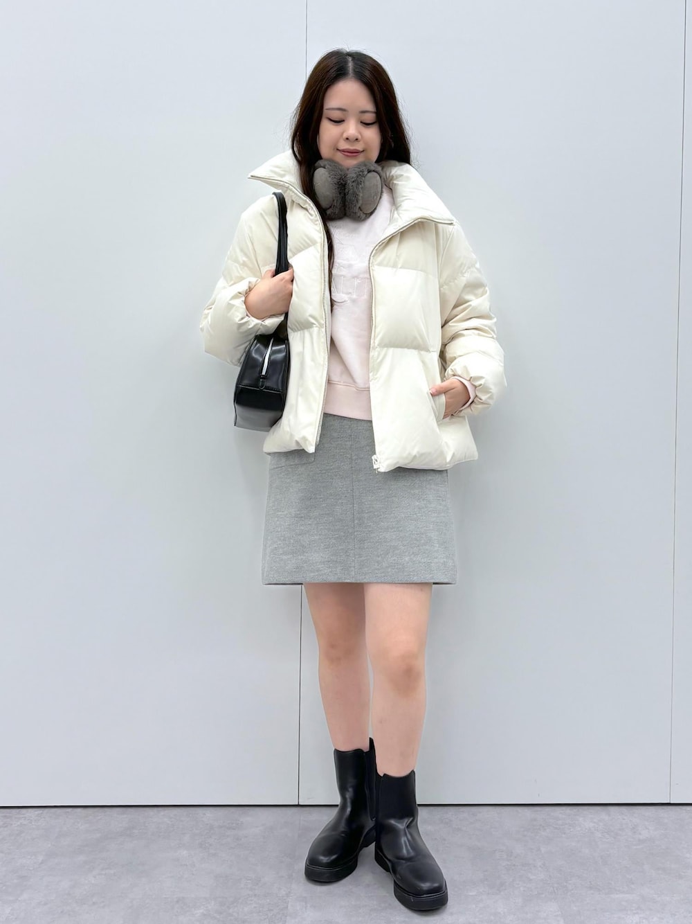 韓国っぽさを意識したスタイリング。ショートダウンとミニスカートのバランス、イヤマフのプラスワンがトレンド感を演出してくれます。