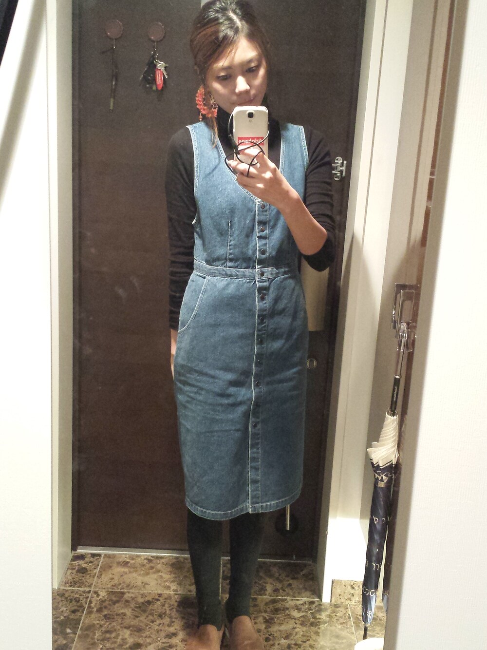 セールでget♪♡ デニムワンピと、もこもこスリッポン