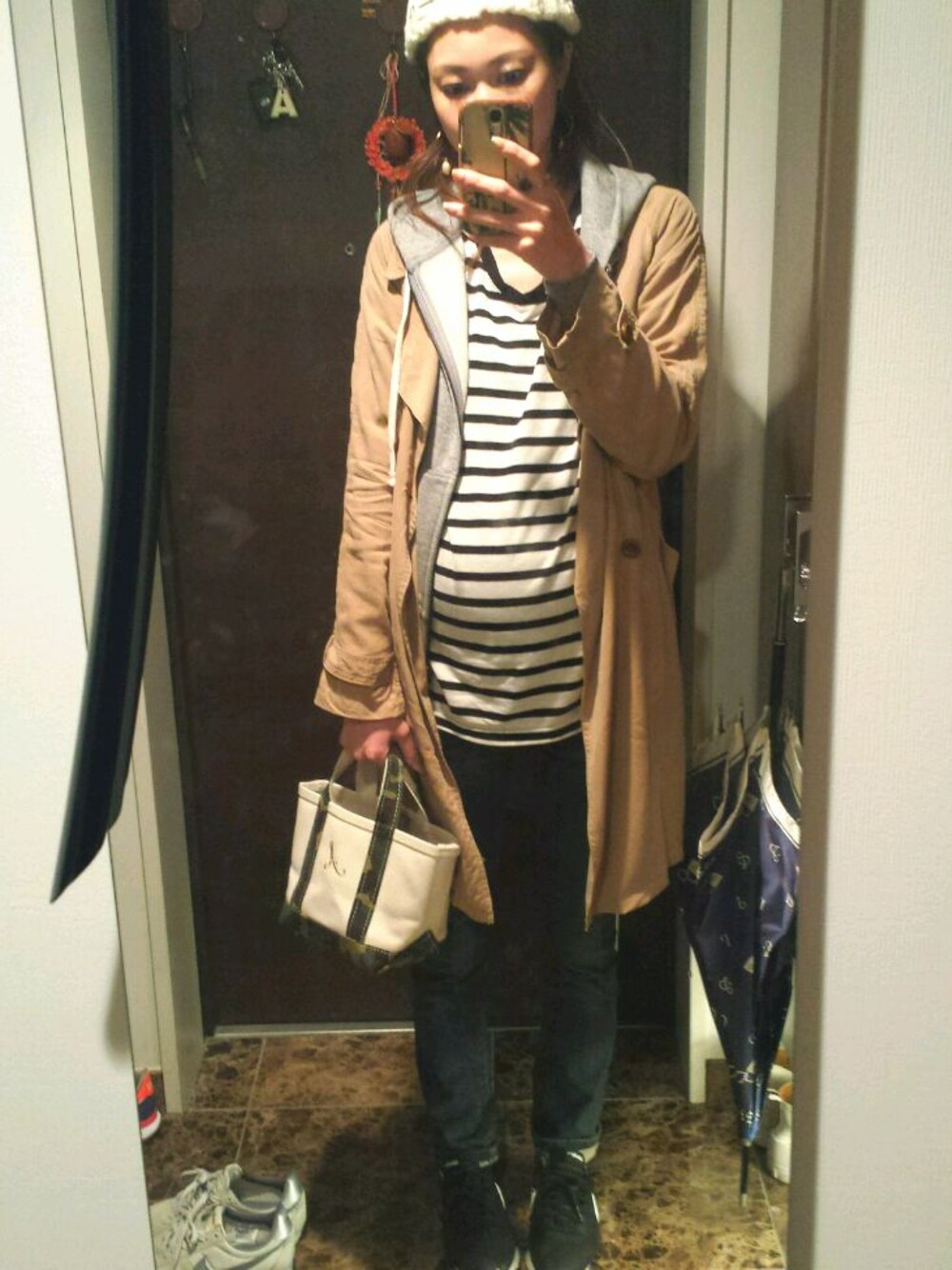 友達のベビーに会いに♪ あったかいので薄着! マタニティコーデ☆