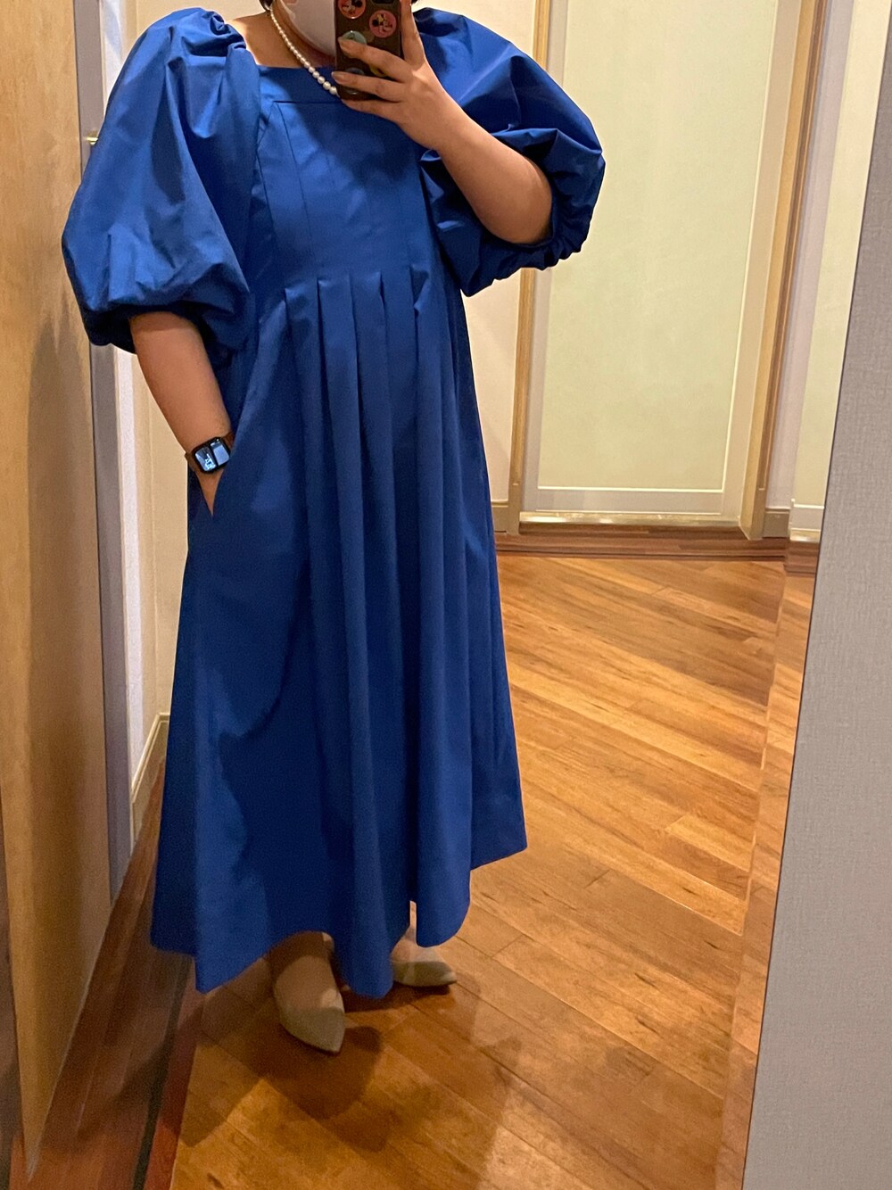 友人の結婚式の日👗 おおきいパフスリーブの、 シルエットがかわいいドレスにした❤︎