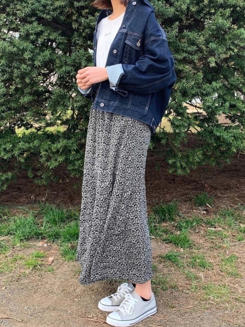 RIHOのスカート「小花柄ロングフレアスカート」を使ったコーディネート