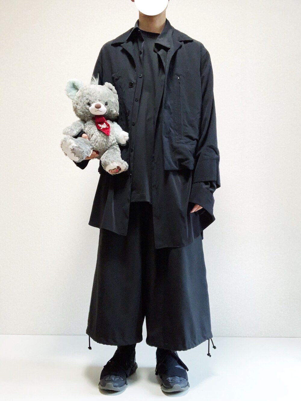 🧸こんにちは☀🧸 人形好きのまぁといいます!ぬいぐるみと一緒に写真を撮るのが好きになってお気に入りのぬいぐるみ達と一緒に撮らせてもらってます😊 もしよろしければいいね、セーブ、フォロー、コメントしていただけると元気出ます!!🤣 今日はオールブラックコーデです!ビッグシャツと短い丈のジャケットを合わせることで丈感で遊びました✨