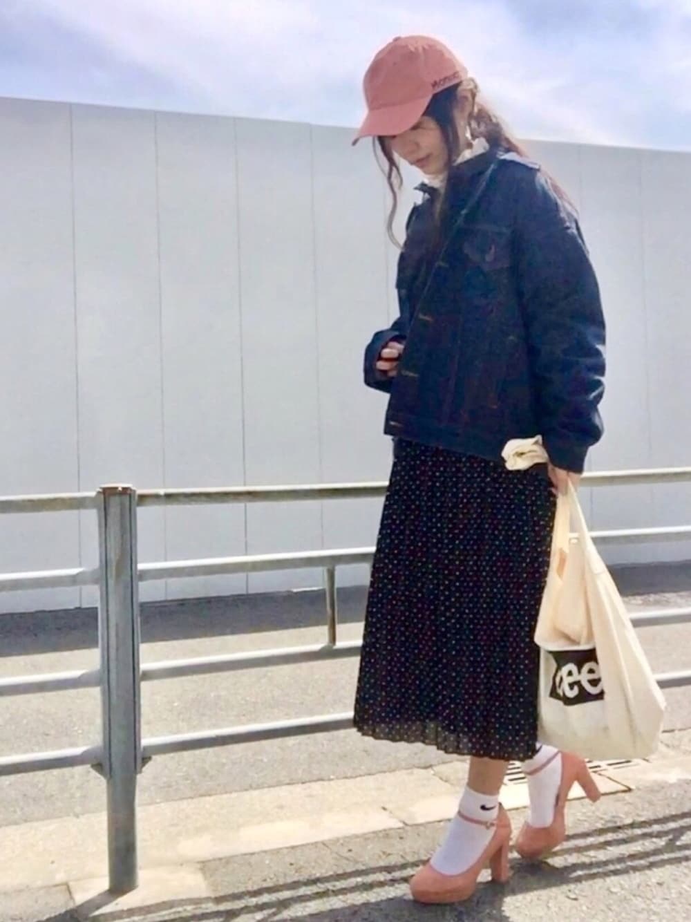 やっとまた少し暖かくなりました🙂 来週はさらに暖かくなるみたいですね🌞 花粉症で2日で一箱ティッシュを消費しています🤧笑 今日はお気に入りのBIG Gジャンにドットスカート合わせました🖤 キャップとパンプスをピンクで春っぽく🌸 鼻をかみすぎて👃周りメイクがのらなくなってます😂笑 iPhone6で撮ってるから見えてないと思いますが😅 せっかくのiPhone Xで自撮りしてませんが家族や景色を写す時大活躍してます😉 あとXに変えてよかったのはFACE IDでApple Payが👛要らずでめちゃ快適😎✨ 今見たら前回コーデのBIG Gジャンまた掲載してもらってました💙 見て下さりありがとうございます💛