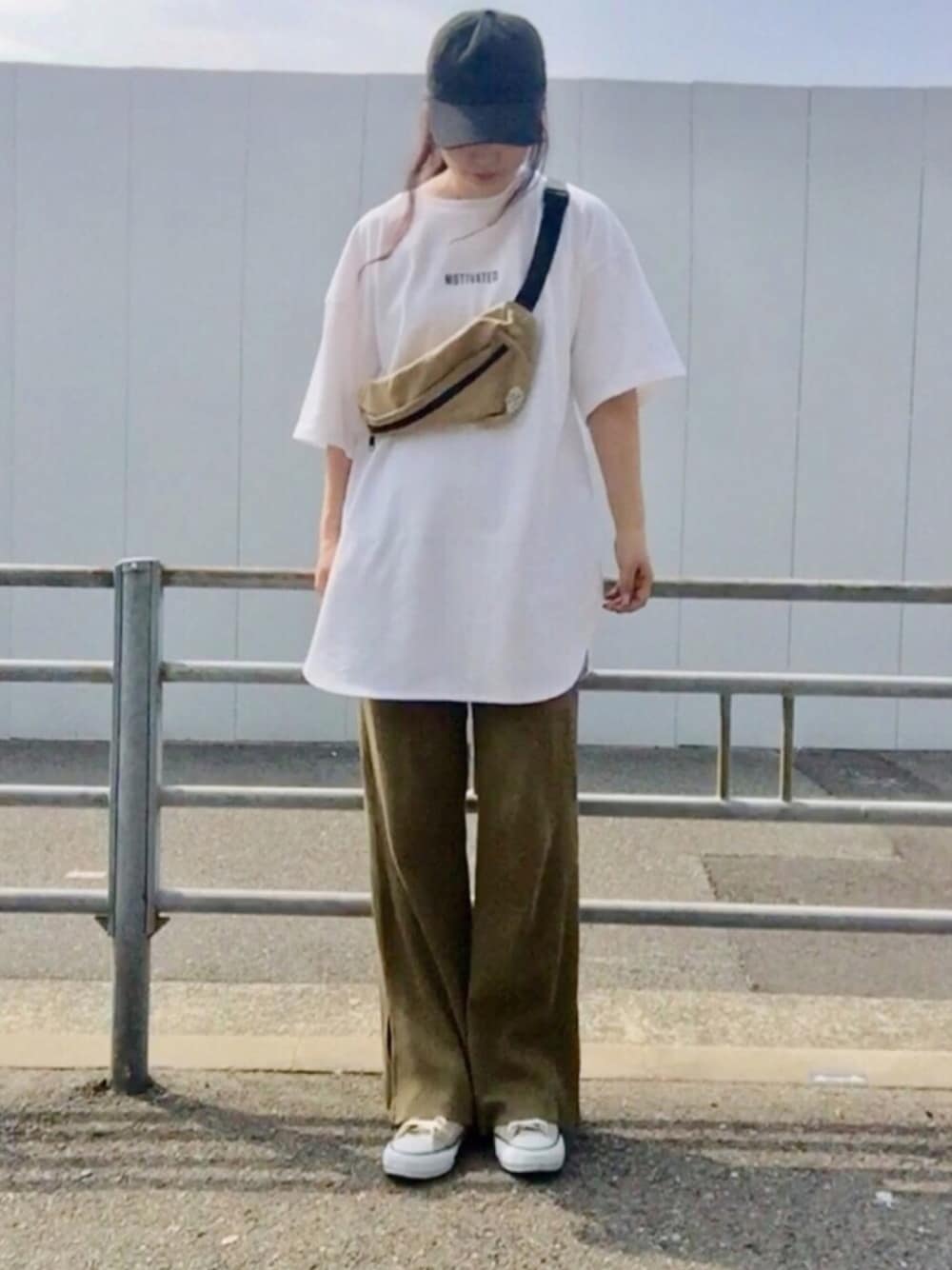すっかり暑くなって🌞 日中は半袖でも大丈夫になりましたね 前回コーデのパーカー無しverです GUのオーバーサイズTは使えますね✌︎