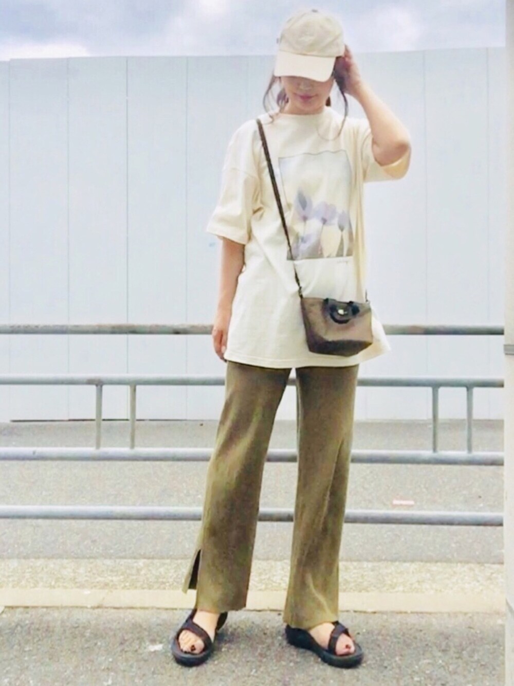 曇ってても蒸し暑い💦 フラワーフォトのビッグT❤︎ これからは1枚で大活躍✌︎ ワッフルリブスリットパンツは めっちゃラクチン✌︎ オークス🏇おもいっきり外した😂 貰った京大チョコ食べよっ😝