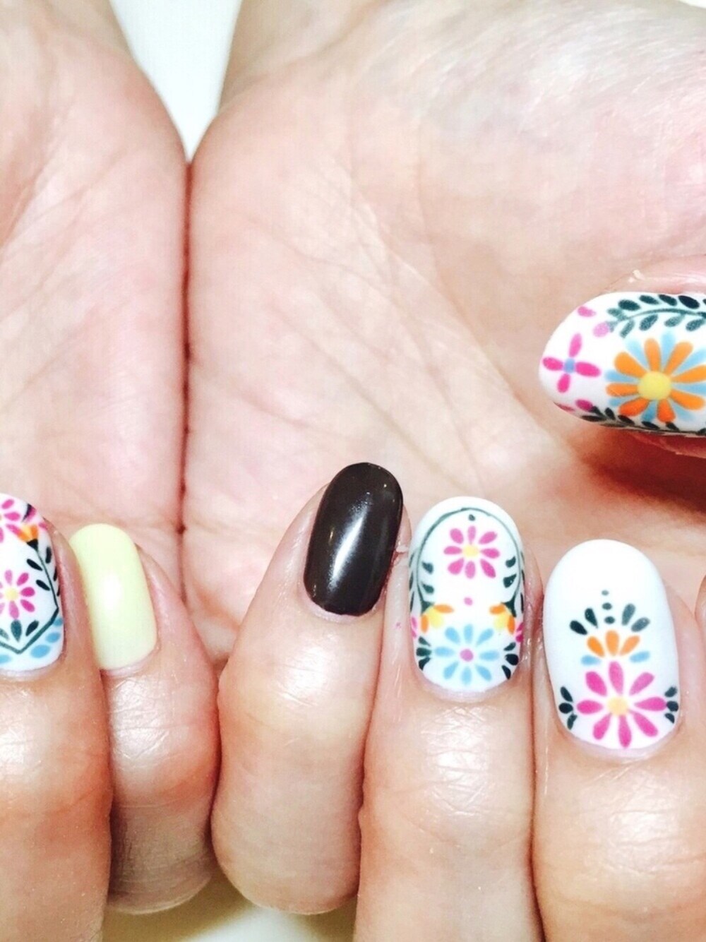 おはようございます♬今日は一日中☔️のようです💦 昨日天気の良い日にネイルチェンジしてきました☀️今回は刺繍のアートに🌿🏵爪💅見てるだけでテンション上がっちゃいます🤗何もしてない頃は爪がすぐ割れたりしてたけど、むしろ💅(削らないパラジェル)してると防水効果も果たしてるようで爪が丈夫になりました✌️ ここのサロンはネイリストが7人ぐらいいますが、いつもオーナーにしてもらってて、その👱♀️はまだ20代なのに経営して凄いです✨旦那さんが主夫をしてるそうで、幼稚園の送り迎えから料理から何から何まで任せきりとのこと💪👨👧 そのオーナーネイリストがマンツーマンで指導してもらえるダイエットを始めたとのことで、その料金が13万だか16万かで高っ‼︎って思いましたが、ライザップとかならその倍はかかるらしく、安くてサロンから近いから選んだそうです。けどインストラクターがゴツゴツした顔だそうで、ライザップならイケメンに指導してもらえるんだろうなぁとぼやいてておかしかったです😆来月引き締まった身体になってるか楽しみ😏✨ 読んでもらってありがとうございます😅昨日のコーデはまた後ほどアップするのでよろしくお願いします♡