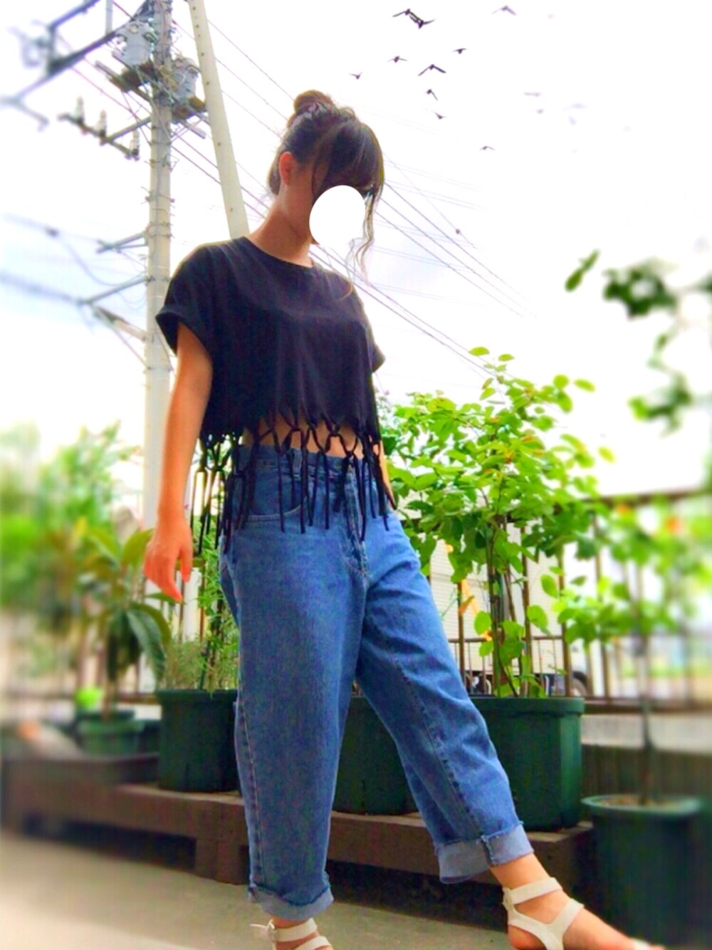 このTシャツは安く売ってたからリメイクした物😊👍🏻 最近リメイクすごく楽しい!! ネイルした💅 柄はエスニック🖖🏻 カラス写り込んだ👁👁