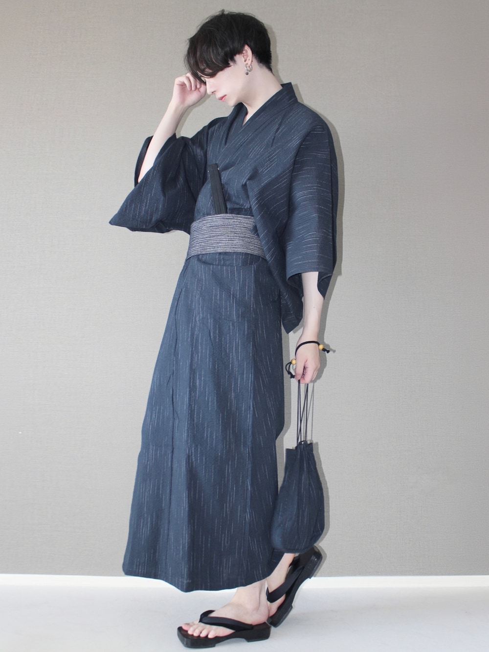Aranの浴衣「浴衣5点セット 帯 下駄 扇子 巾着 男性浴衣」を使ったコーディネート