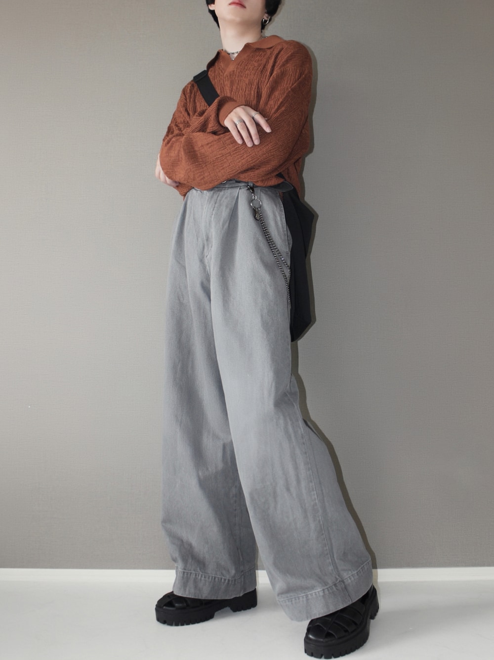 Aranのデニムパンツ「Wide Straight / Flare Fade Denim / ワイドストレート / フレアフェードデニム」を使ったコーディネート