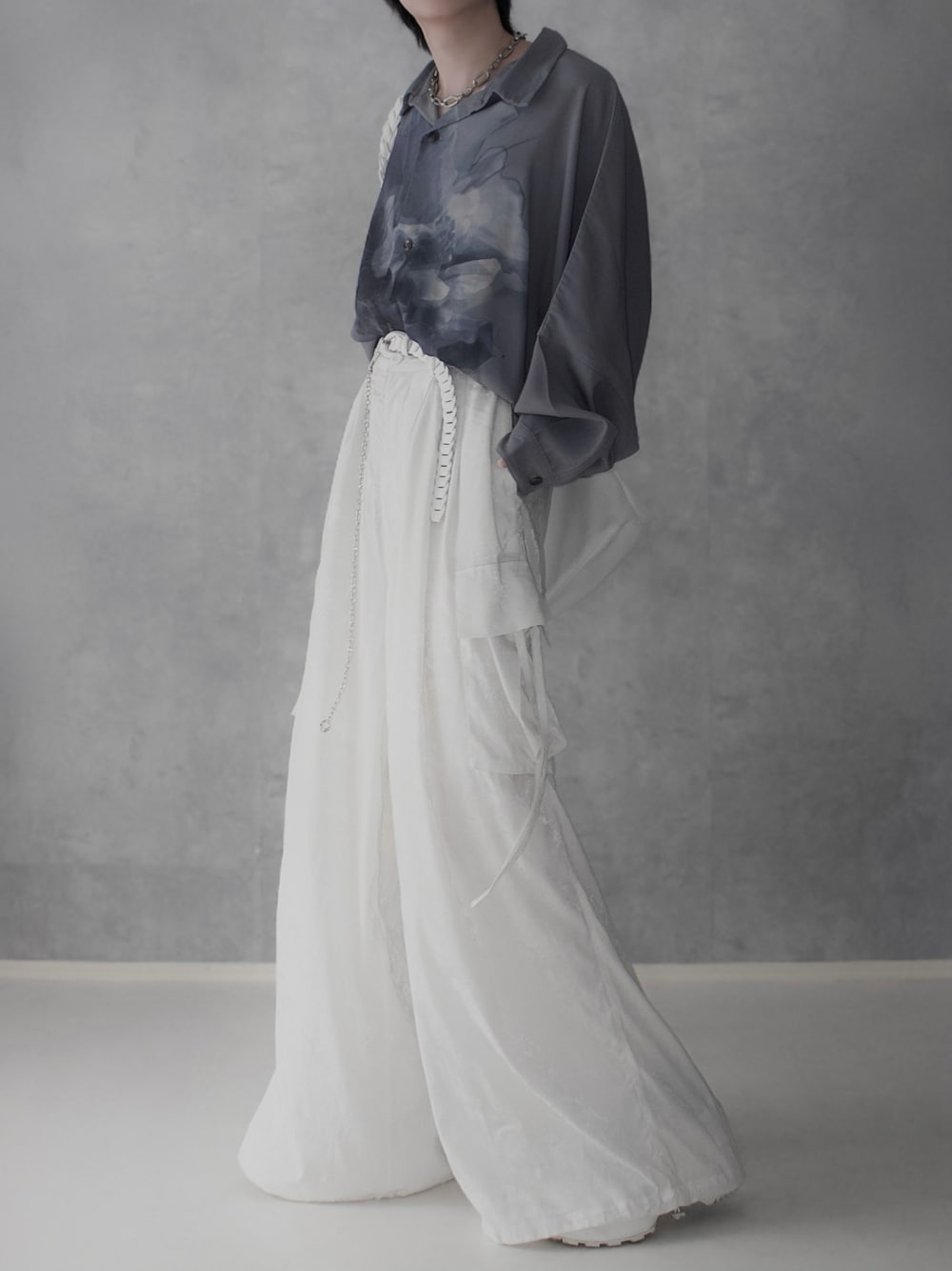 芸術的イメージを持つ抽象柄のボカシシャツと、動きのあるドレープ感が目を惹くポイント🕊 ㅤ ご覧頂きありがとうございます⸜🙌🏻⸝ いいね、Save 励みになります! Instagram ▶︎▷@wear_aran