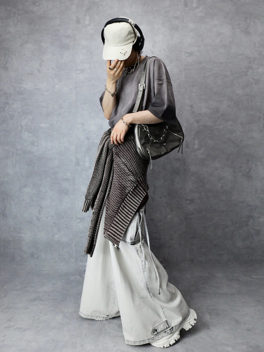 Aranのカーゴパンツ「【Spielio】Vintage like denim cargo wide pants/ヴィンテージライクデニムカーゴワイドパンツ」を使ったコーディネート