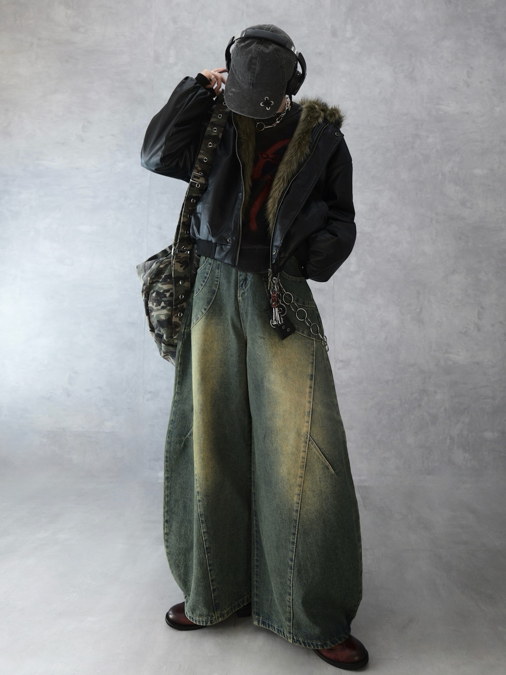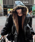 Aranのブルゾン「ファートリミングフードダークブラックレザージャンパー」を使ったコーディネート