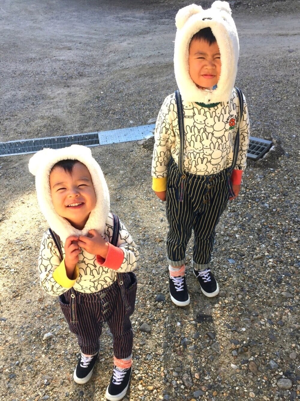 バトンコーデ👉吊りズボン 真似っこ失礼します😅笑 ヒロさん所のゆまちゃんと よーちけくんと おソロコーデ❤️ 12月のとあるあたたかい日