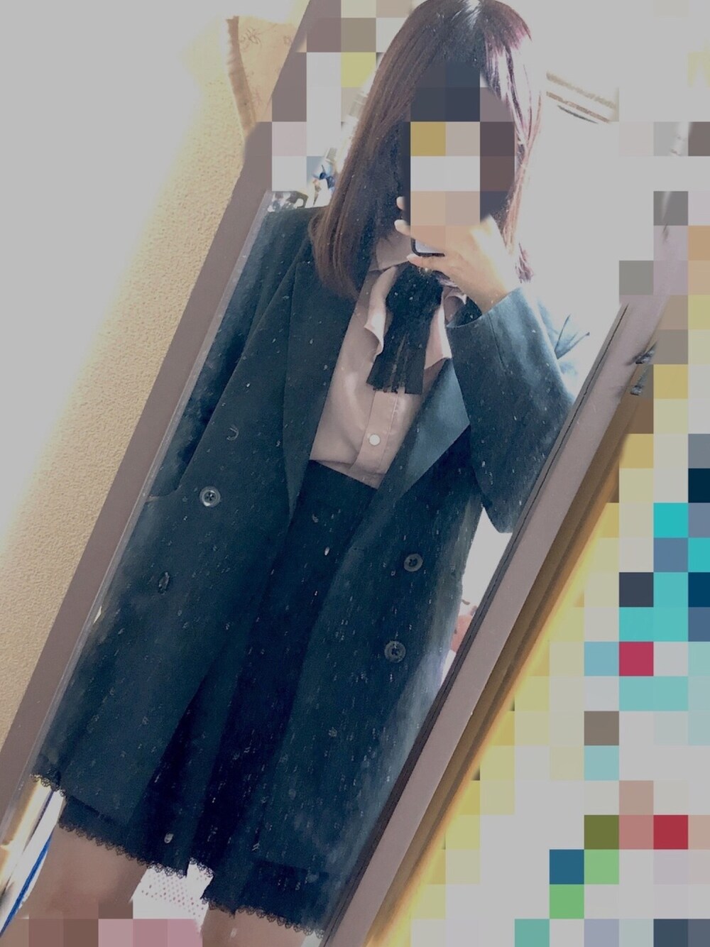 黒とピンクの組み合わせ最強♡ アウターでかっこよさも👊 鏡汚くてごめんなさい💦💦