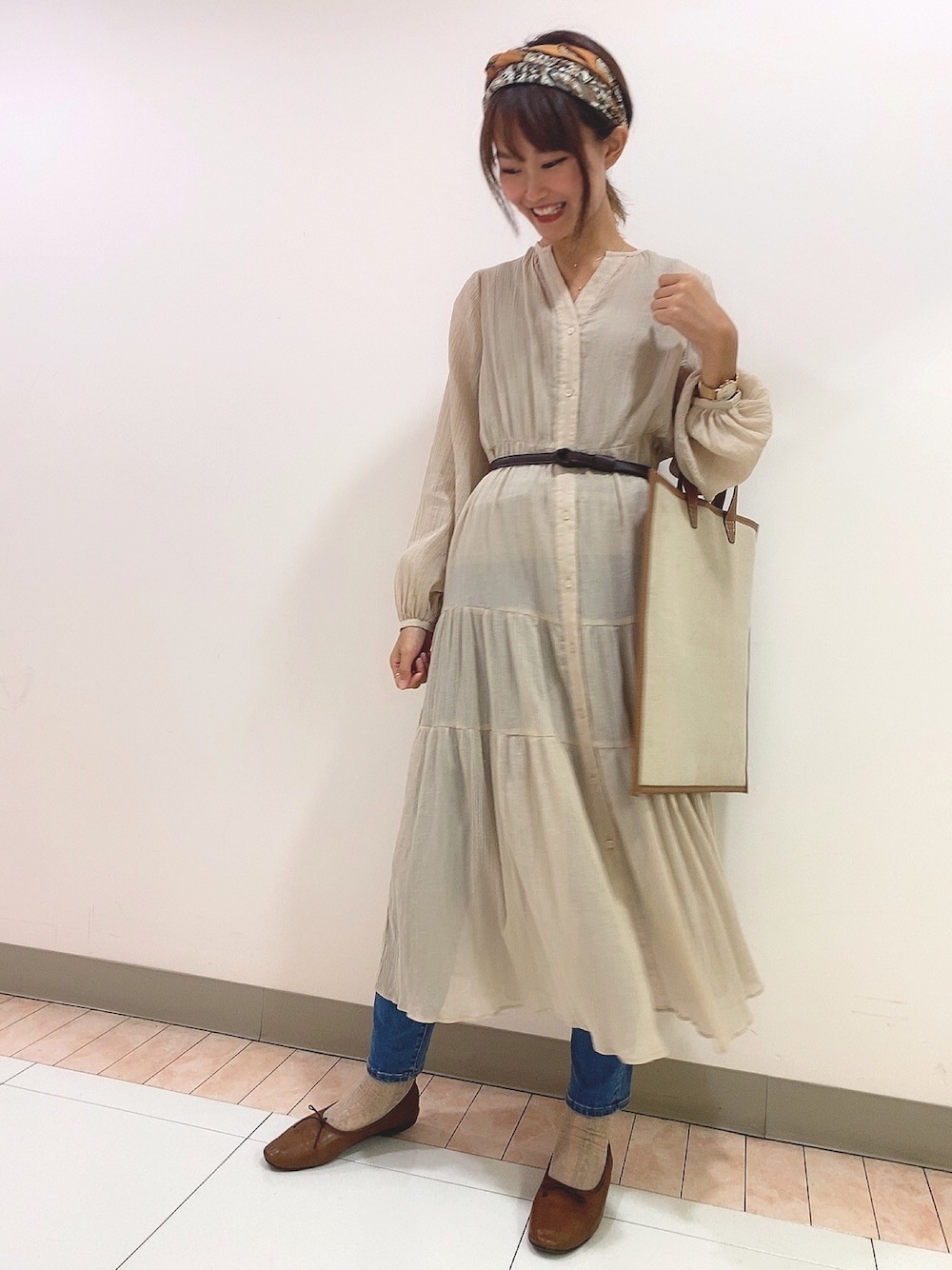 自転車通勤なので汚しそうで怖くて買えないけど、着てみたかったワンピースコーデです(笑)