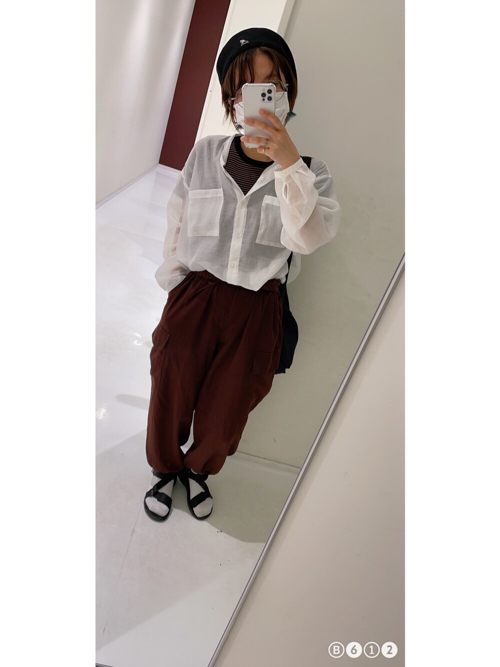 最近お気に入りのシアーシャツ! カジュアルな格好や柄のTシャツに軽く羽織るだけでカジュアル過ぎず大人過ぎ無いスタイルに! 1枚プラスするだけで印象をガラッと変えられるアイテム! シアーシャツはトレンドアイテムでもあるのでオススメ! パンツは生地感がすごく気持ちよくて通気性に優れたレーヨンが入ってるので暑くなっても大丈夫! 形もバルーンぽくなってるのでシルエットも可愛い! セットアップでもきれるのがいい! セットアップはレベルが高い!と思う方だと シャツの色を変えてピンクとブラウンと言ったように組み合わせを変えて着てみても可愛いかも😄 あと、ハンチングとスポサンはこの時期のお気に入りアイテムです笑