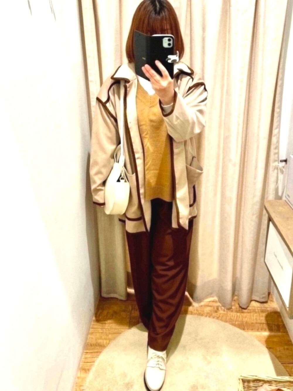 皆さんいつも いいね♡お気に入り、コメント 📝フォローありがとうございます🙇🏻♀️💕 この前美容院💇♀️に行った時のカフェオレコーデです🤗🤎✨ 終わった後に五右衛門でパスタ🍝のハーフ&ハーフを食べました😆✨ 一皿が量が多くてお腹がはち切れそうだった〜🤣 普通の1皿にすればよかった〜🤣 メンズは丁度いい量だと思うけど〜🤗 美容院の前に時間があったのでナナズグリーンティーでティータイム🥤して洋服も買っちゃった〜😆✨ SM2のブラウンのふちどりが可愛いパイピングジャケットにニットベストとワイドパンツを合わせたカフェオレコーデです🤗✨ ジャケットのふちどりにベストとパンツをブラウンでハニーズのサークルバックとドレスシューズをホワイト系で合わせました😆🤎🤍✨ もしよろしければ、いいね♡お気に入り、コメント📝フォローして頂けると嬉しいです😉💖