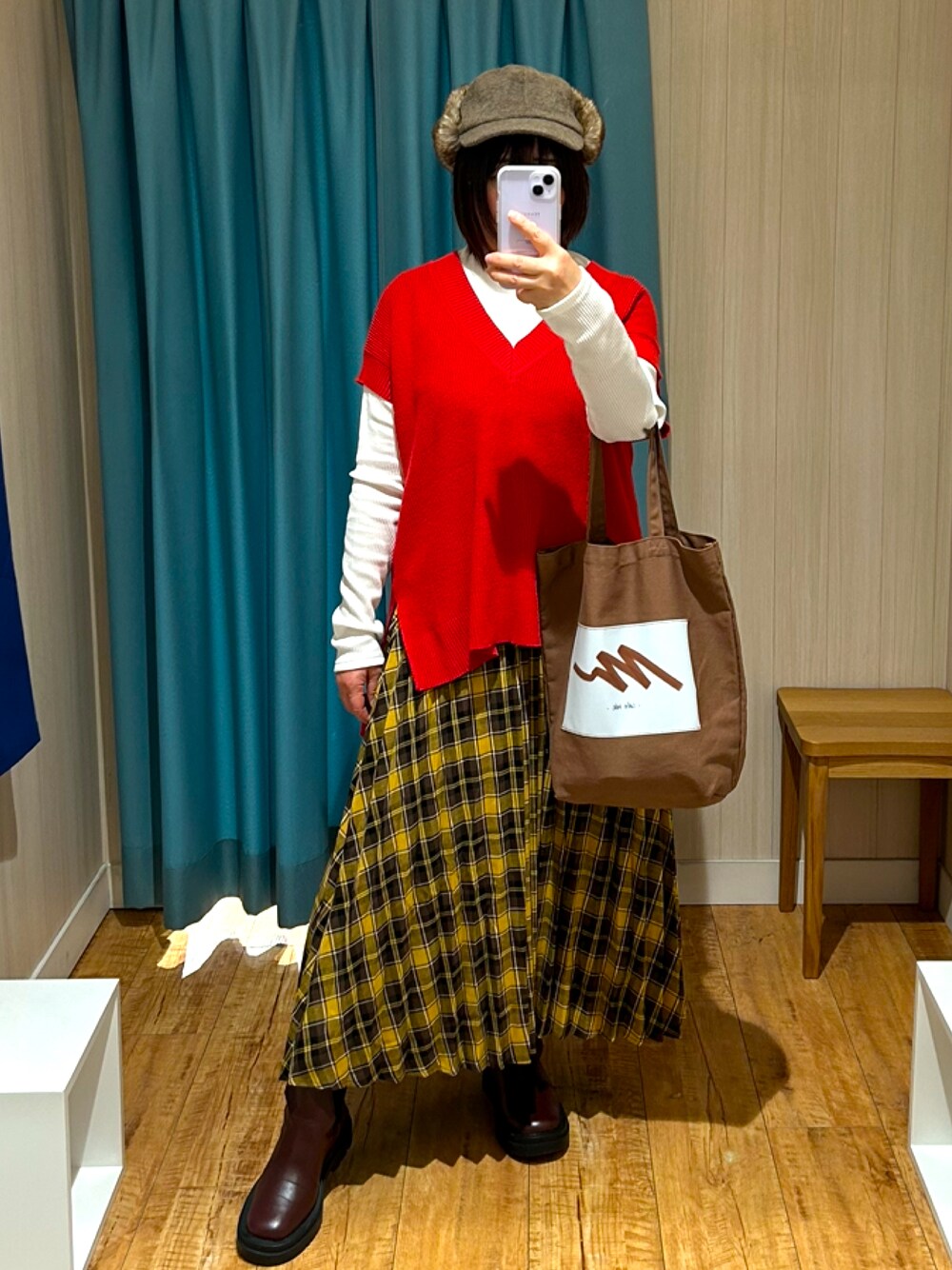 皆さんいつも いいね♡saveコメント📝フォローありがとうございます🙇🏻♀️💕 yuuさん素敵なフォルダに入れて頂きありがとうございます🙇🏻♀️💕 お出掛けした時のキレイめカジュアルコーデです😆💖 フライトキャップにブーツ👢とWAREISTAのMr.SZKとcoenコラボ商品のカフェバッグ☕️をブラウンで合わせました😆🤎✨ プリーツで上品なイエローのチェックスカートに赤のベストを合わせアクセントにしました😆❤️✨ 又皆さんの所にお邪魔しますのでよろしくお願いします🙇🏻♀️💕 もしよろしければ、いいね♡saveコメント📝フォローして頂けると嬉しいです😉💖