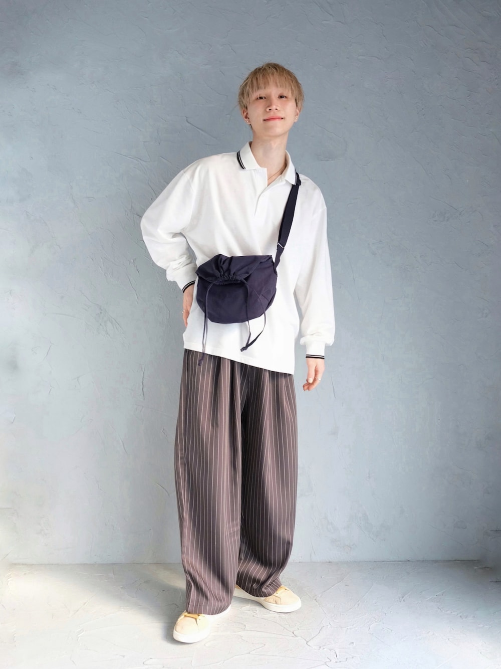 いったのその他パンツ「ストライプ2タックワイドパンツ」を使ったコーディネート