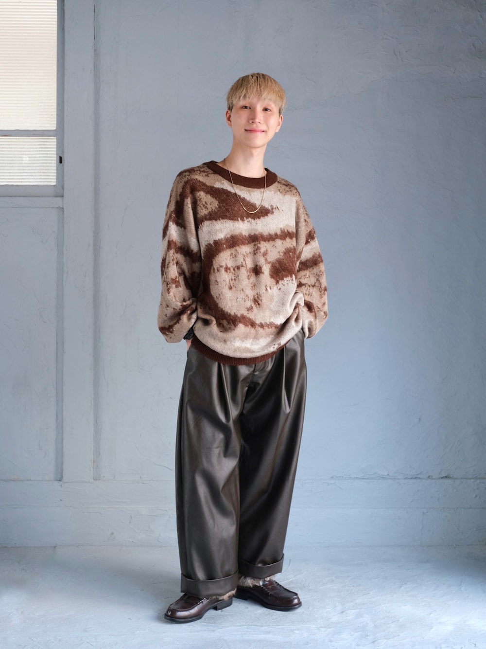 いったのニット/セーター「モヘアライク ルーズシルエット グラデーション アブストラクト煙柄ジャガード シャギープルオーバーニット【Confirm】」を使ったコーディネート