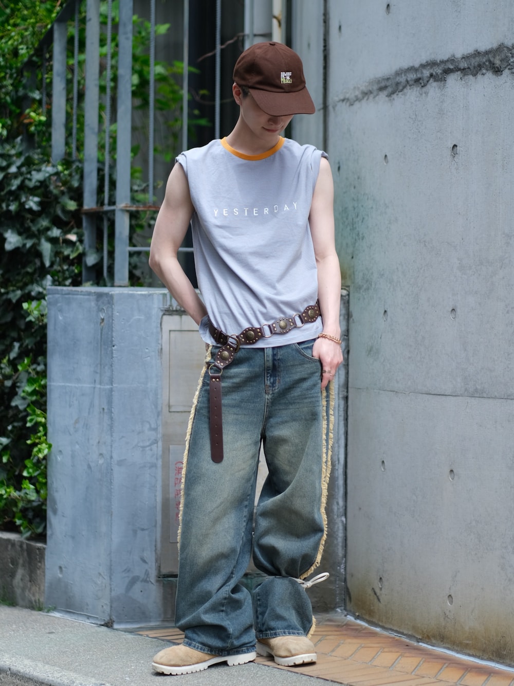 フレアパンツ風にアレンジ✨ 裾の広がったパンツが欲しいけど持ってない…って時は、コードベルトを巻いてフレアシルエットを作るのもアリ! 今回はヴィンテージデニムにベルトを巻きつけて、自作フレア風にアレンジしてみたよ👍 Tシャツも袖をまくってタンクトップ風にすれば、腕周りすっきりでより夏らしく◎ もともと可愛いTシャツでも、アレンジ次第で雰囲気変えられるのが面白い! 今ある服でつくる新しいバランス、ぜひやってみてね😆
