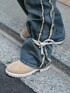 いったのデニムパンツ「《JaVaジャバコラボ》一瞬でシルエットもキマル! 配色 × フリンジデザイン。 綿100% サイド フリンジ ワイドルーズ オーバーサイズ デニムパンツ」を使ったコーディネート