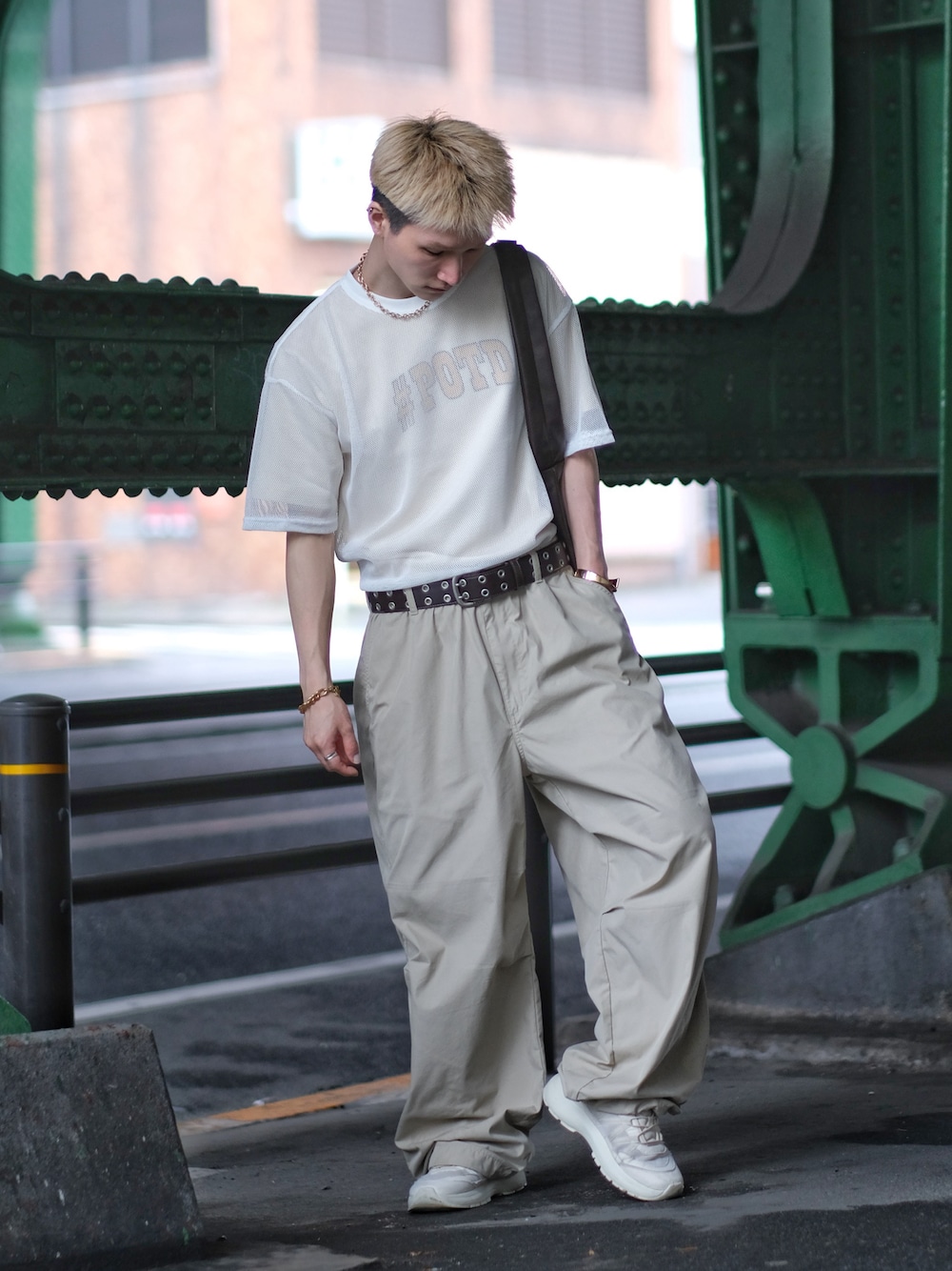 ベースは#POTDのロゴTなんだけど、その上から透け感のあるシアートップスをレイヤードして、ほんのり影を作るようなニュアンス仕立てに✨ シンプルだけど、視線がふっと留まる仕掛けをつけるのがおすすめ👍 ボトムスはワイドパンツでボリュームを出して、腰元のガチャベルトで引き締め✨ 全体は白〜ベージュ〜グレージュの淡色トーンでまとめて、暑い日でも見た目涼やかに🎐 足元のスニーカーも、しっかりボリュームを出してバランスを調整👟 着こなしに余白を持たせつつ、ディテールで遊ぶのが気分◎ 実は雨の日の淡色コーデのためにスニーカーには防水スプレーをして、パンツは撥水性の高いナイロン素材のカーゴパンツにしてる☂️  ̄ ̄ ̄ ̄ ̄ ̄ ̄ ̄ ̄ ̄ ̄ ̄ ̄ ̄ ̄ ̄ ̄ ̄ ̄ ̄ ̄ ̄ ̄ ̄ ̄ 閲覧いただきありがとうございます! よかったらインスタのフォローもしてねっ! プロフからも飛べるよ✈️ instagram📷 @wear.itta  ̄ ̄ ̄ ̄ ̄ ̄ ̄ ̄ ̄ ̄ ̄ ̄ ̄ ̄ ̄ ̄ ̄ ̄ ̄ ̄ ̄ ̄ ̄ ̄ ̄ コーディネートやアイテムに関する質問があれば,気軽にコメントしてくださいっ‼️ ご用件などは、instagramのDMにお願いいたします🙇  ̄ ̄ ̄ ̄ ̄ ̄ ̄ ̄ ̄ ̄ ̄ ̄ ̄ ̄ ̄ ̄ ̄ ̄ ̄ ̄ ̄ ̄ ̄ ̄ ̄
