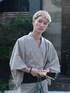 いったの浴衣「しじら織り帯付き浴衣 扇子 下駄 巾着 5点セット 無地/ストライプ」を使ったコーディネート